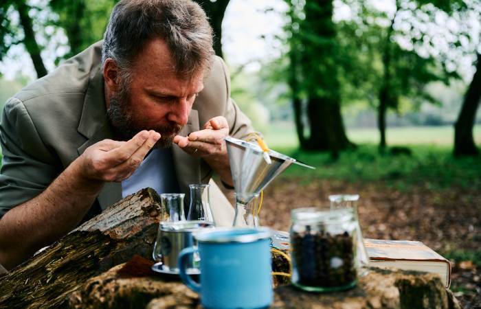 Pulsierende Bäume im Takt der Gezeiten. Schamanische Wesen zwischen den Zeiten und Kategorien. Pflanzen als Chronist:innen zivilisatorischer Vergangenheit und Zukunft. Dazwischen Nebel, Sterne, Konstellationen, Menschen, Fadenwürmer, Kaffee und ziellose Spaziergänge.